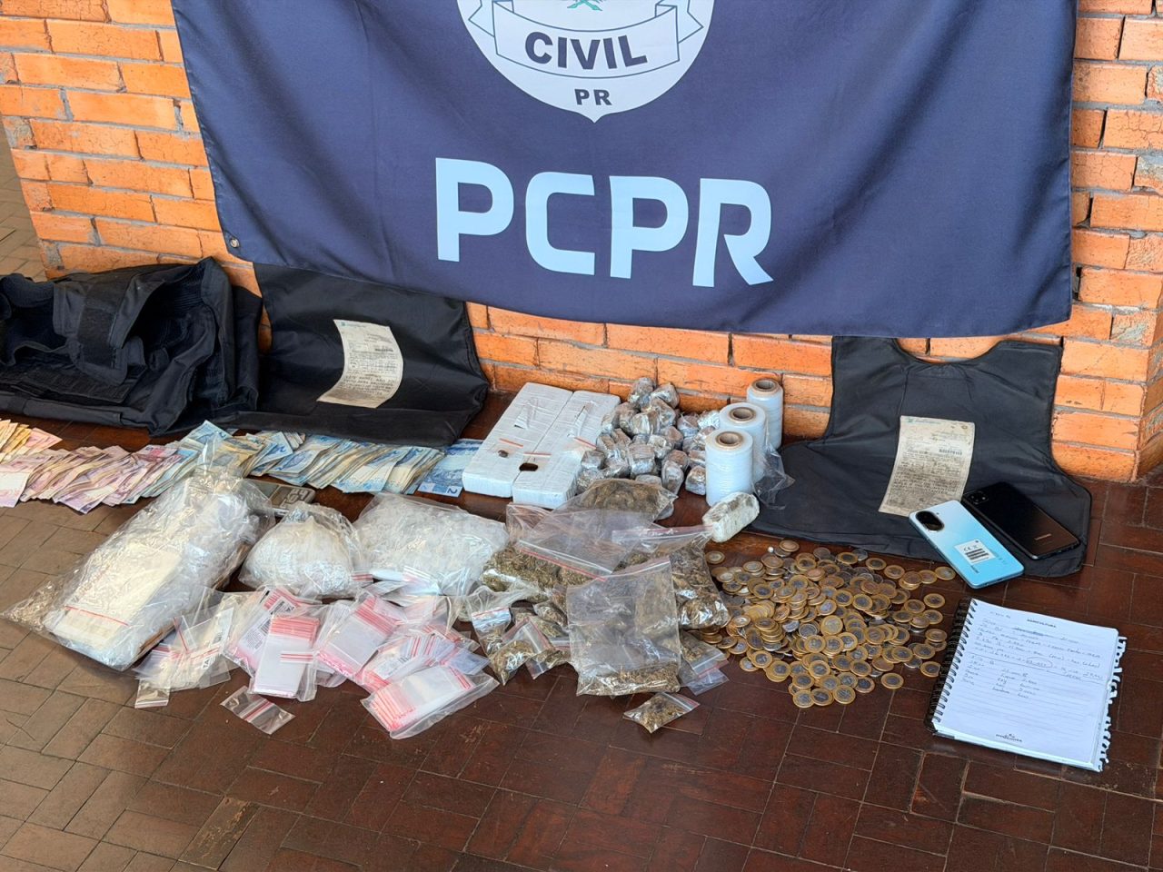 A prisão ocorreu após investigações que levaram à apreensão de grande quantidade de drogas, dinheiro em espécie e dois veículos utilizados no esquema: um Toyota Corolla e uma motocicleta.