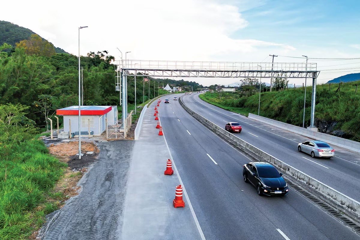 🔎O free flow (fluxo livre) é um sistema de pedágio eletrônico sem cancelas que permite a cobrança automática da tarifa sem que o motorista precise parar ou reduzir a velocidade (entenda mais aqui).